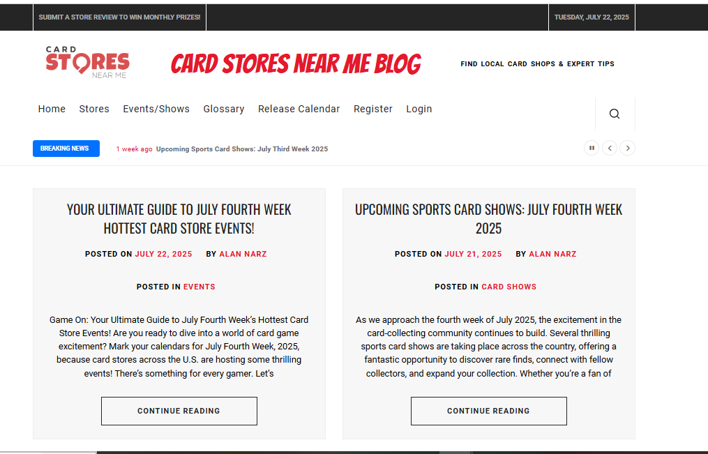 Are you a trading card enthusiast looking for the latest sports card shows, TCG events, and local card shop happenings? Look no further! At CardStoresNearMe.com, we make it easy to stay updated with weekly card store events and card shows across the United States. 🗓️ What You’ll Find on Our Continue Reading