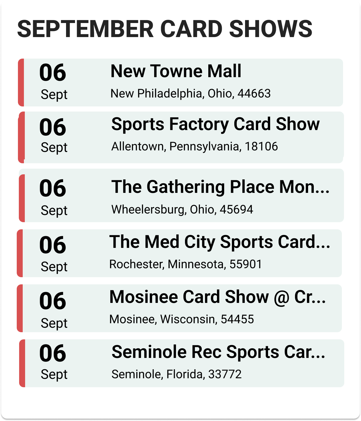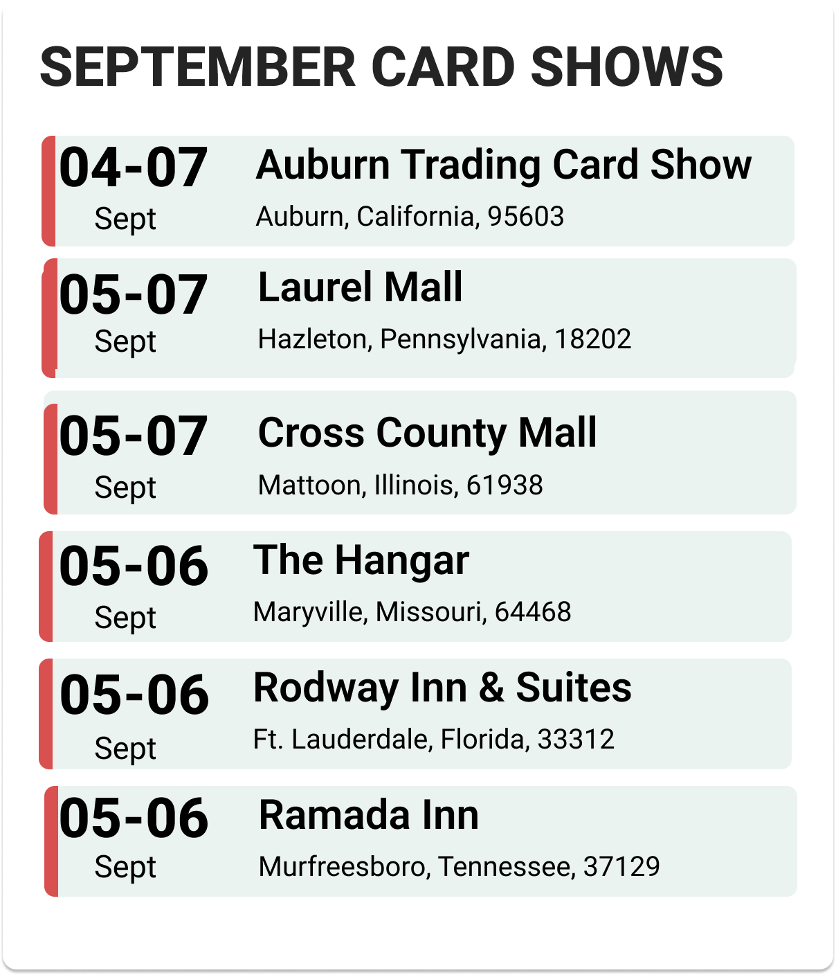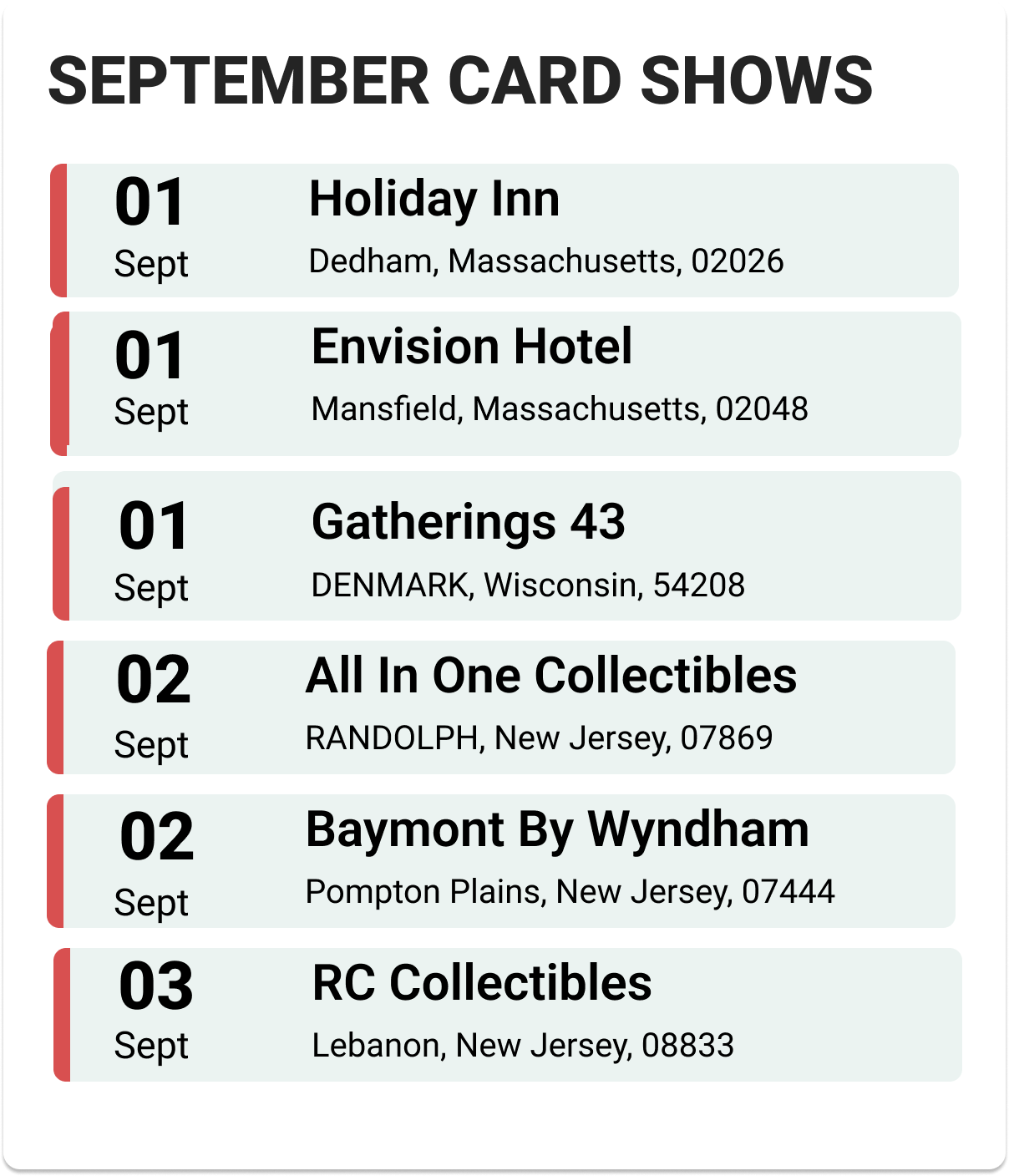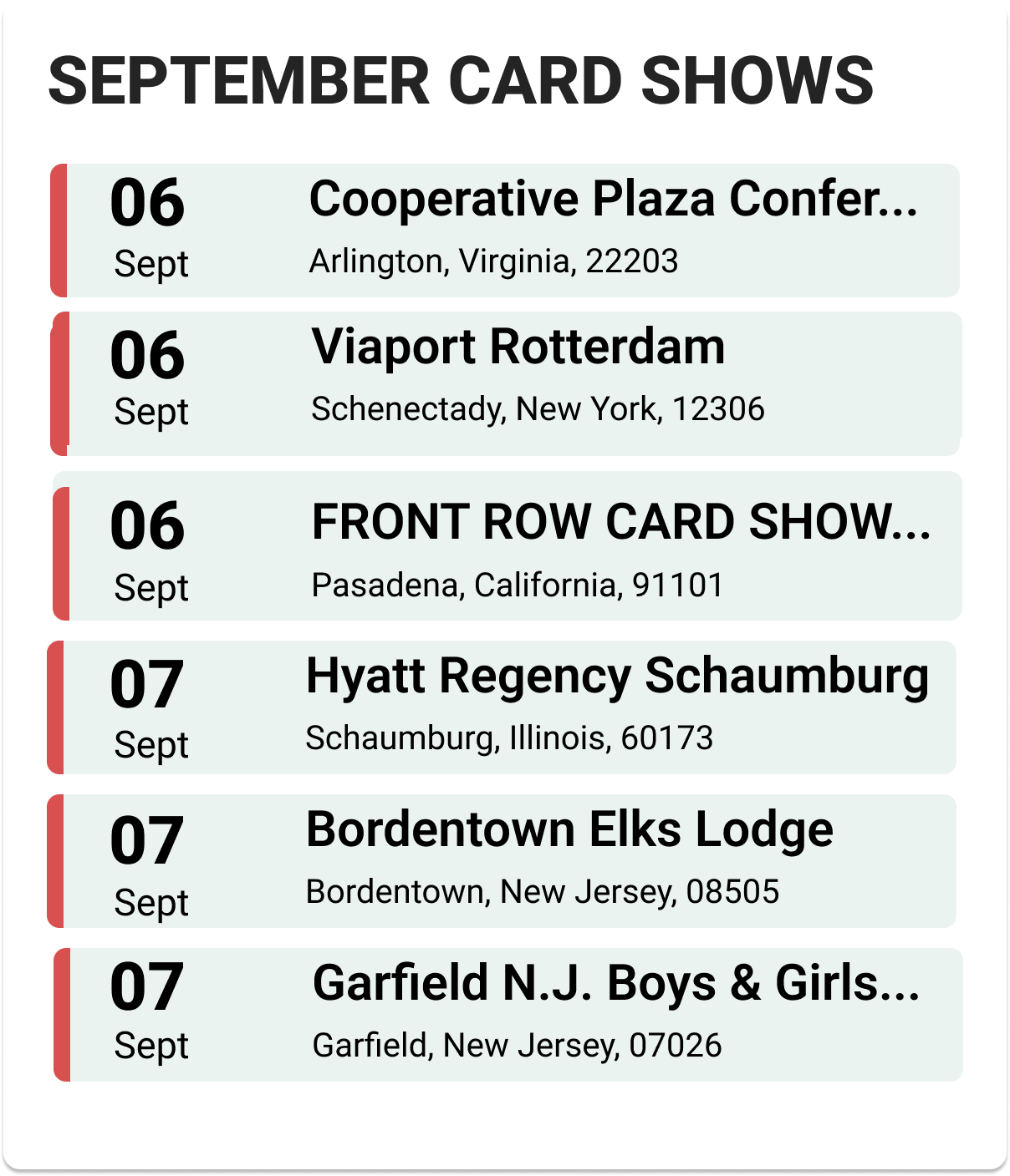 Upcoming Card Shows: First Week September 2025:
