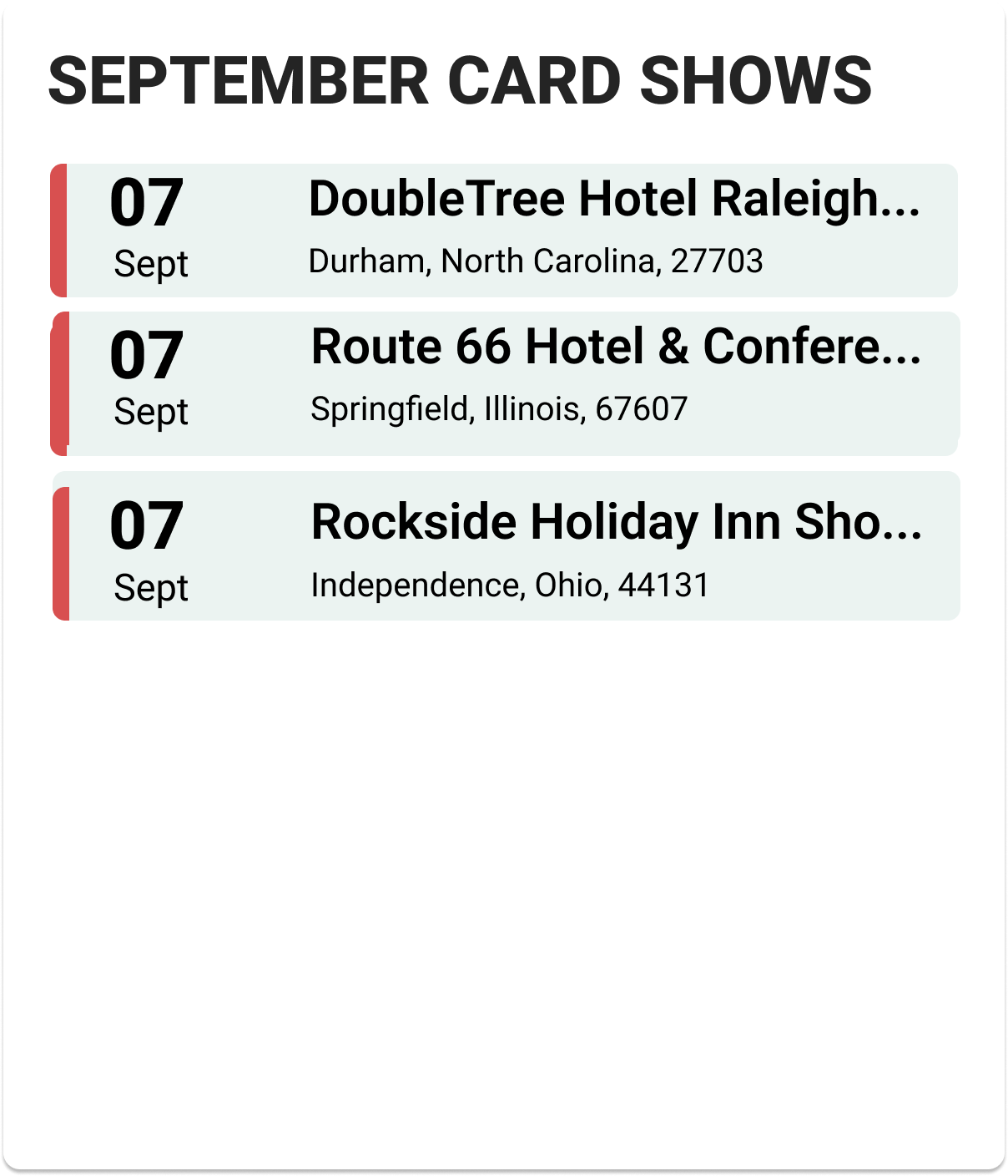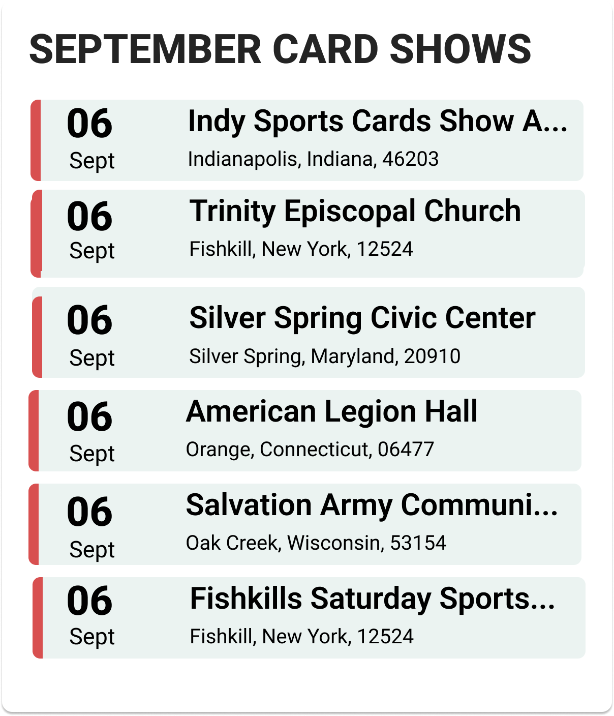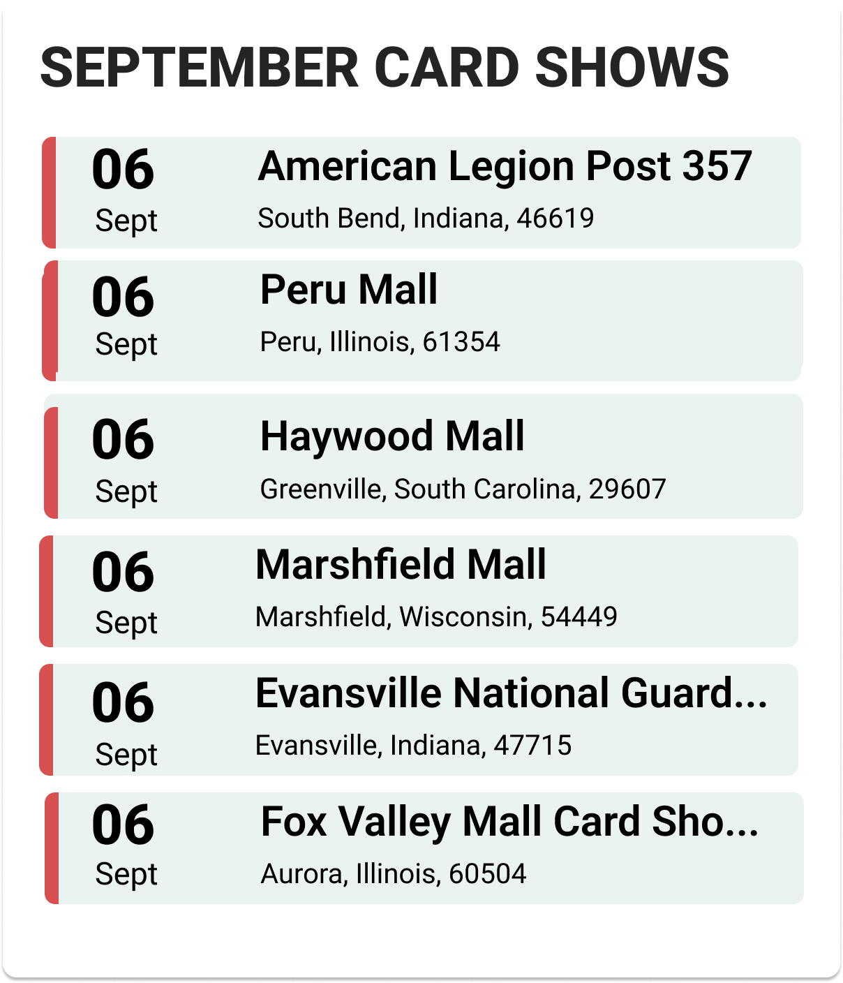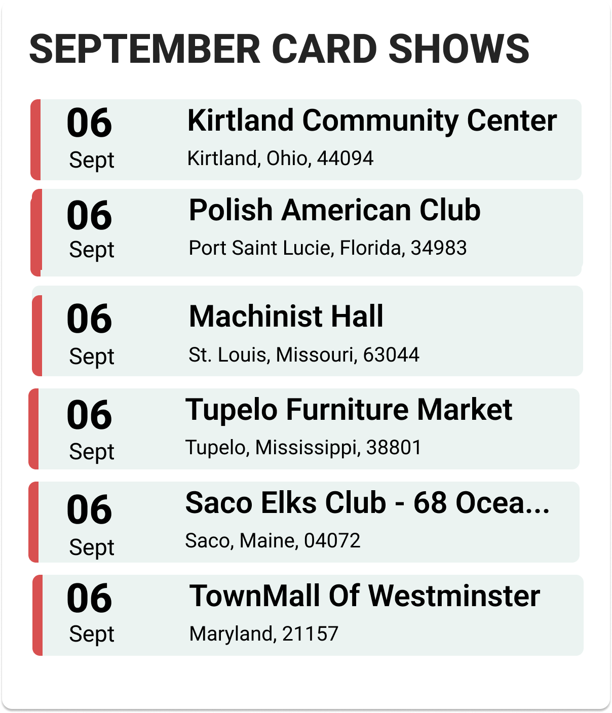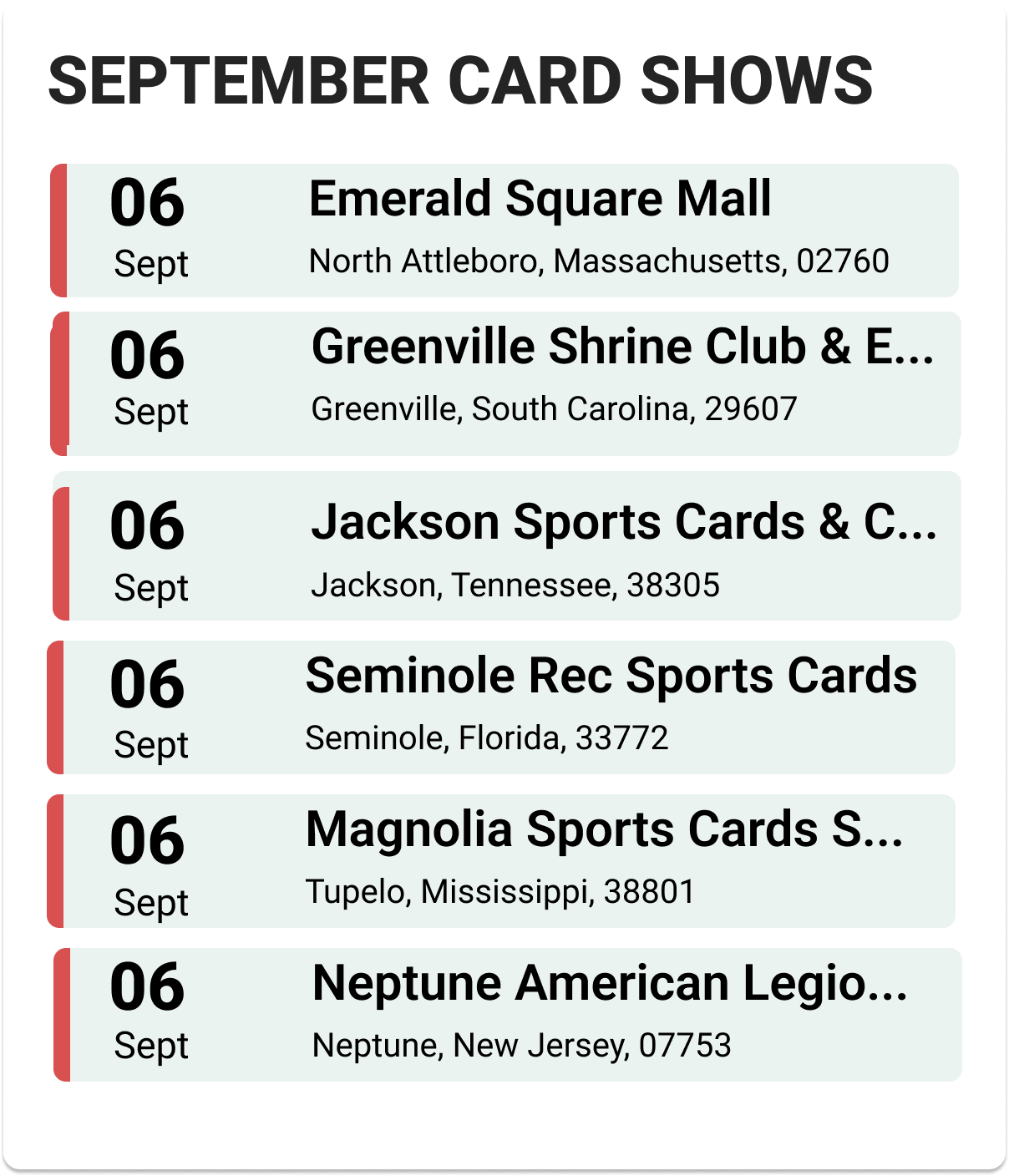 Upcoming Card Shows: First Week September 2025: