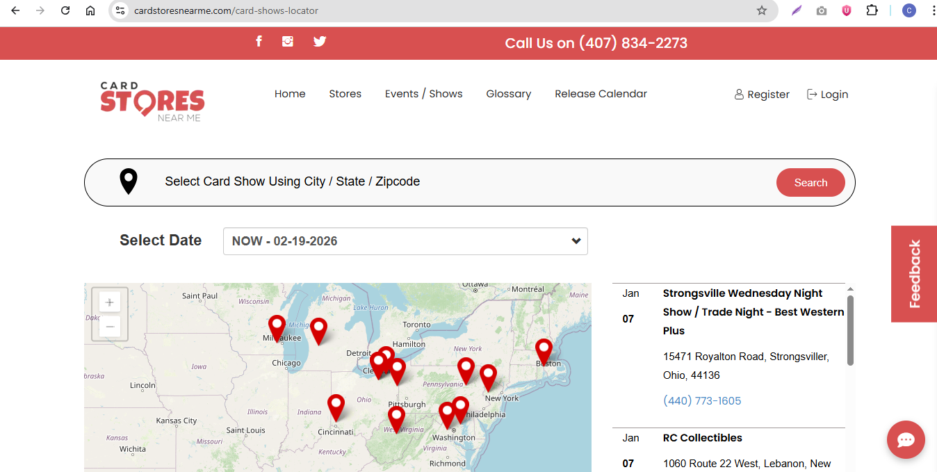 With the Card Shows Locator on CardStoresNearMe.com,you can quickly search for upcoming card shows and view their locations on an interactive map.