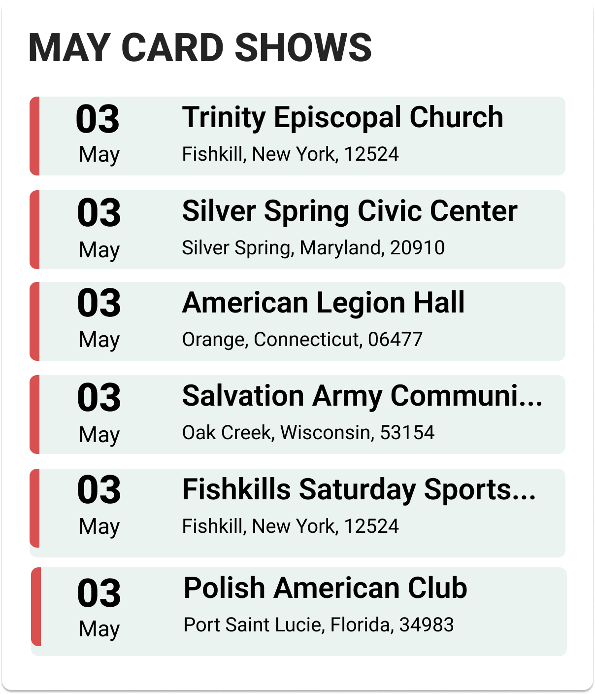 Details: A community-focused card show at the Polish American Club in Port Saint Lucie.