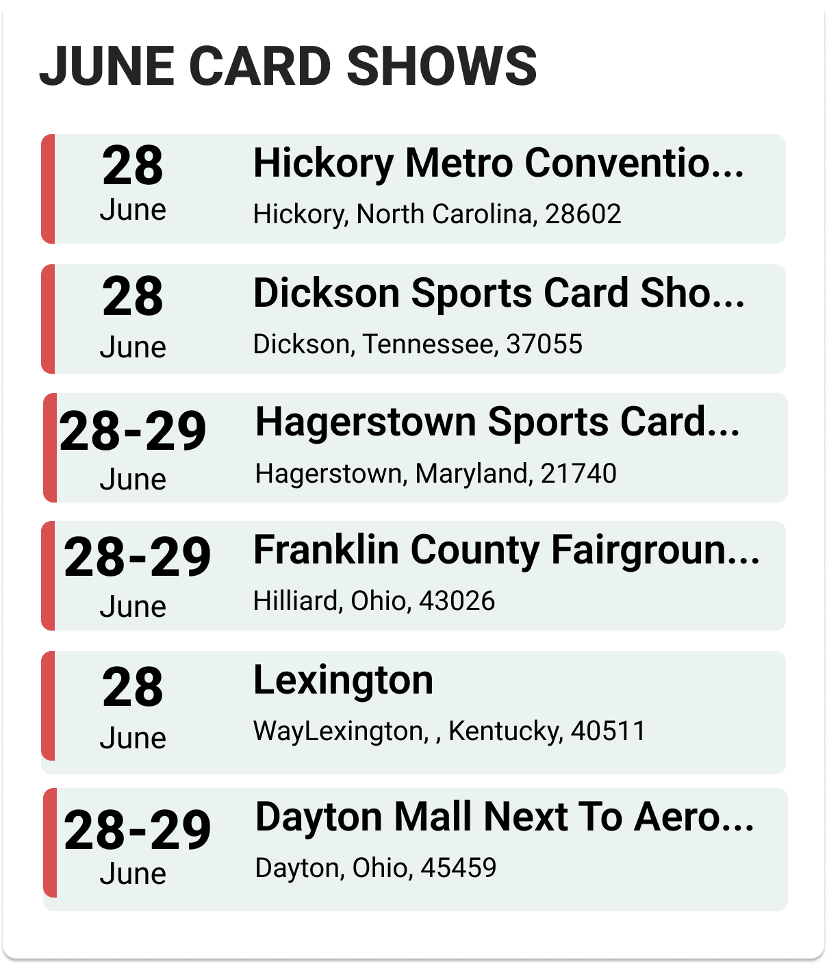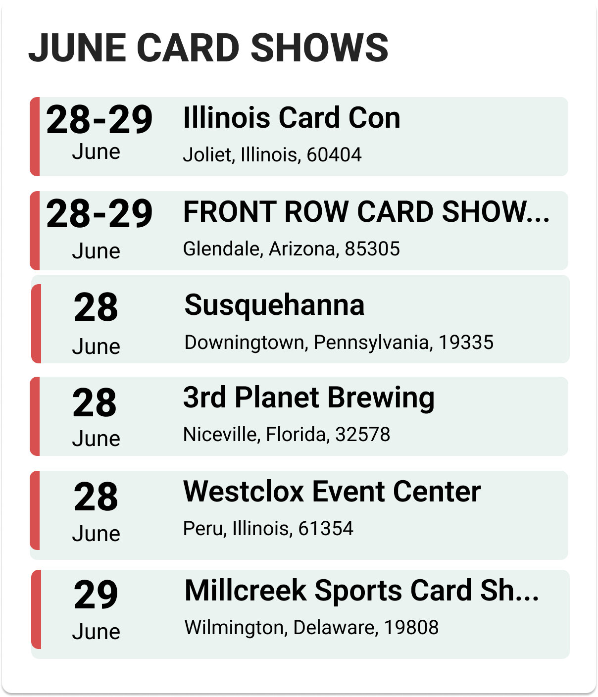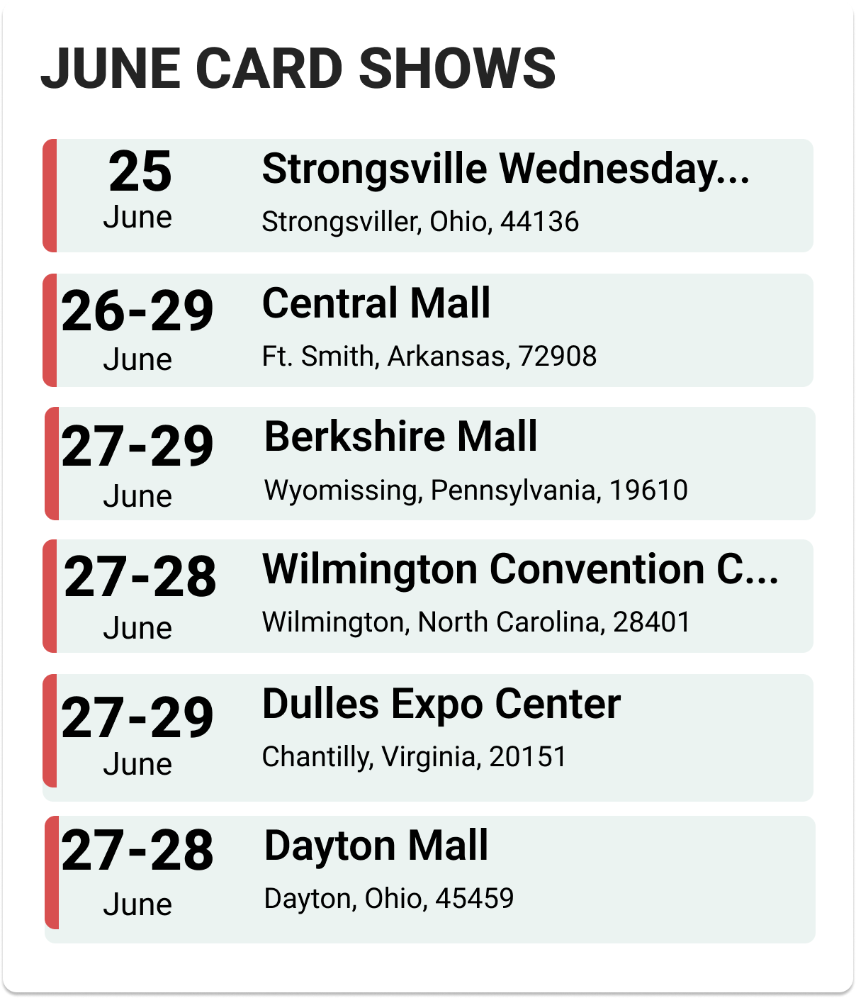 Upcoming Sports Card Shows: June Fourth Week 2025