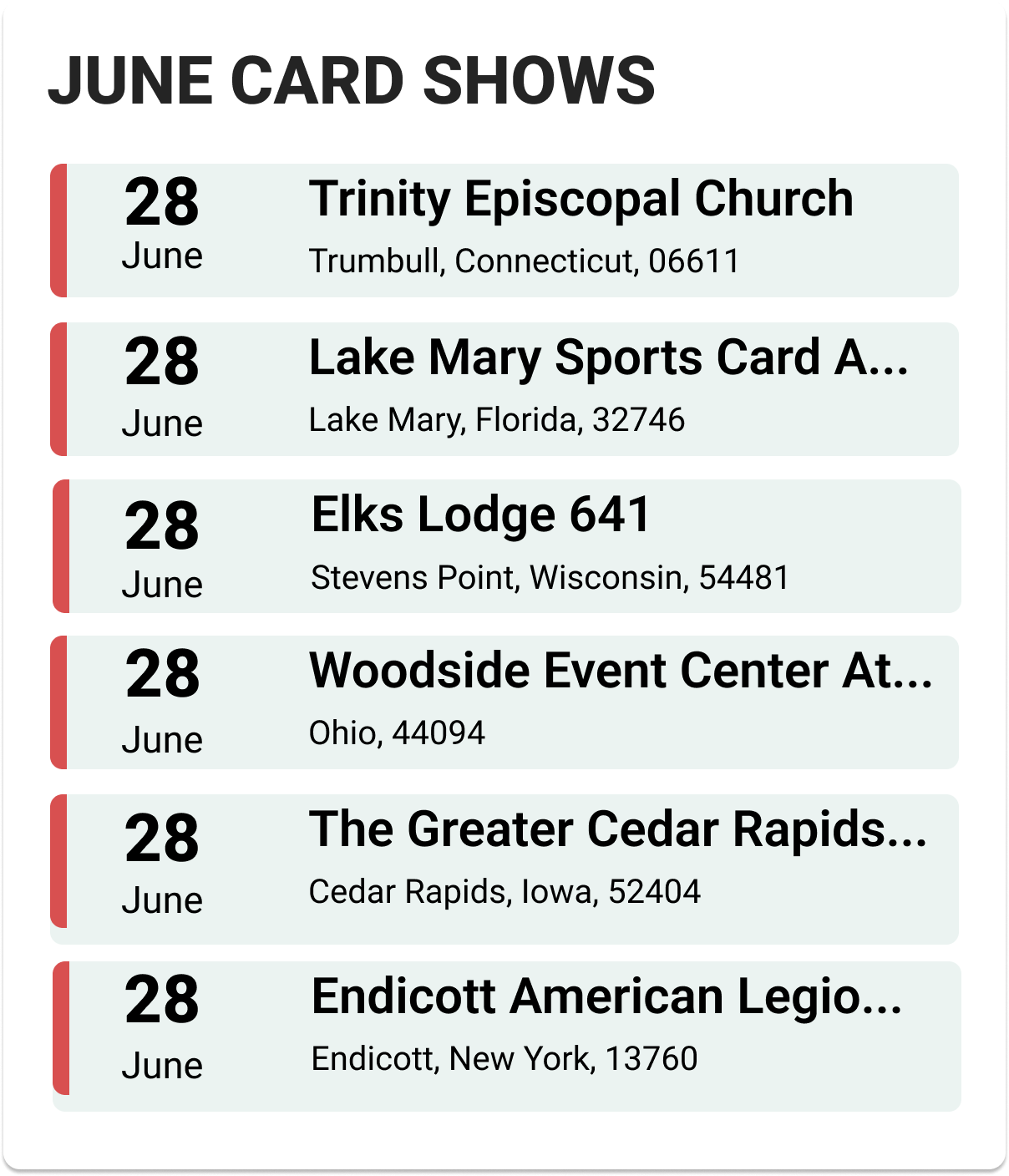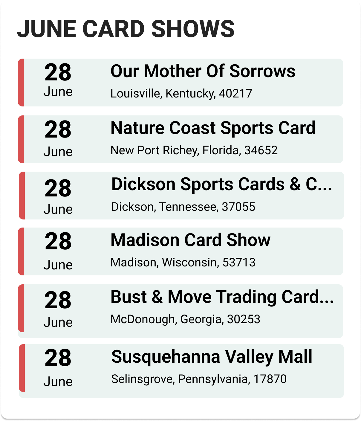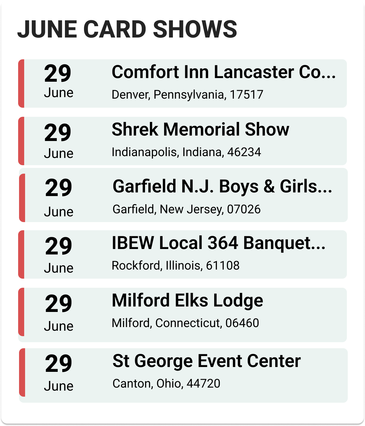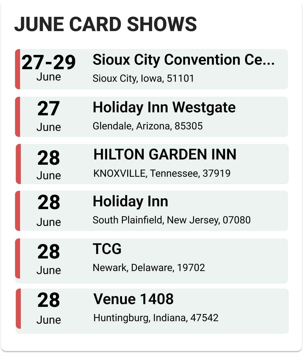 Upcoming Sports Card Shows: June Fourth Week 2025