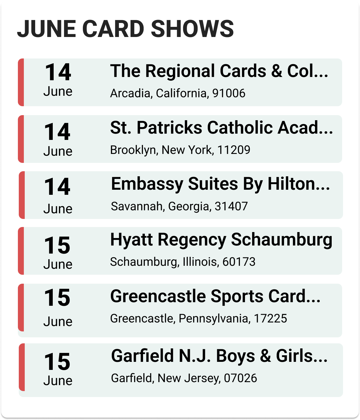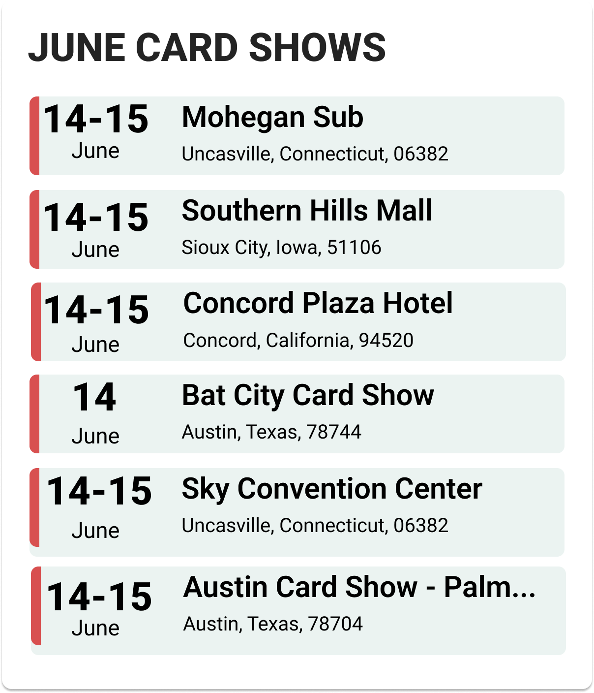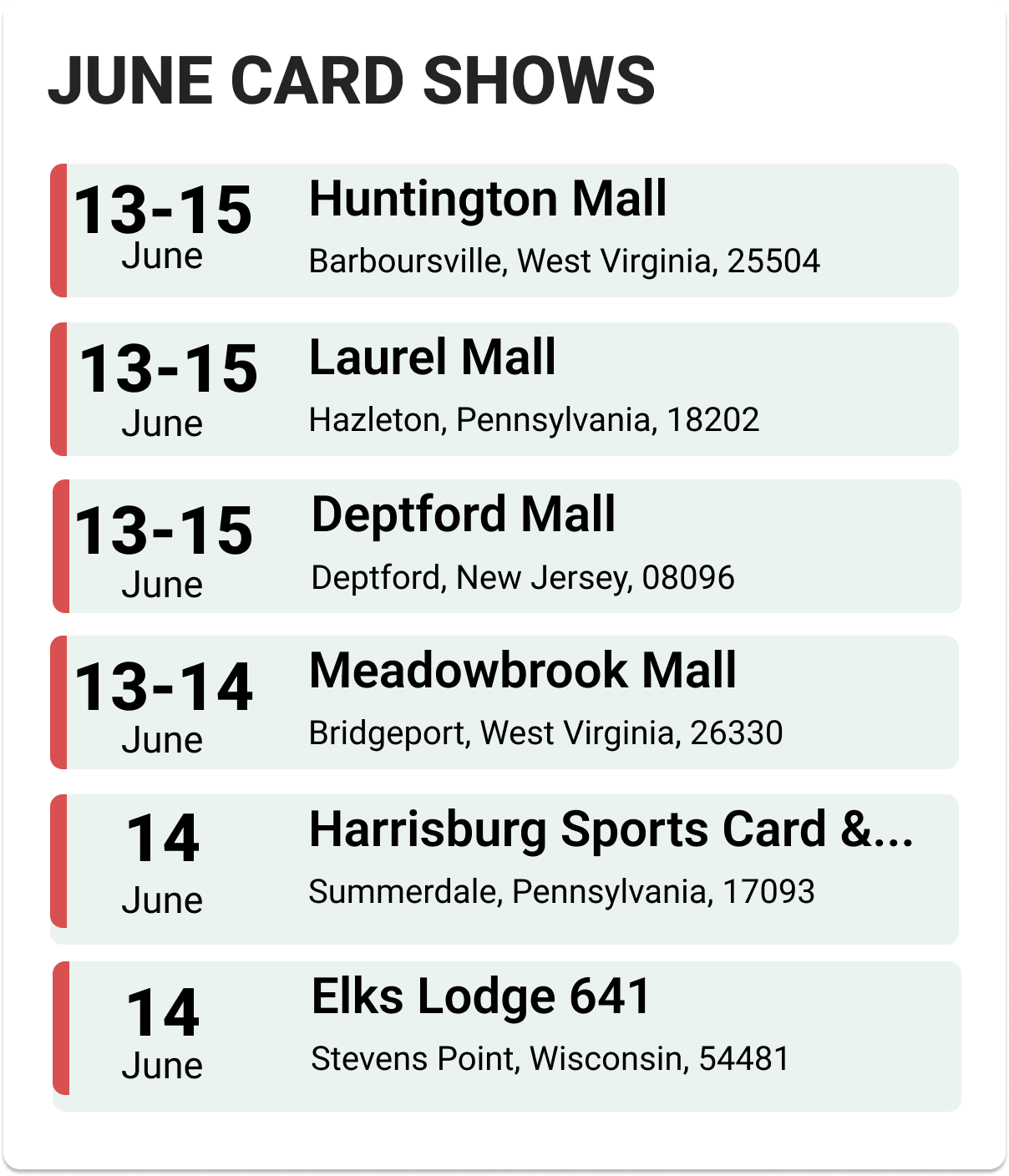 Upcoming Card Shows: Second Week June 2025: