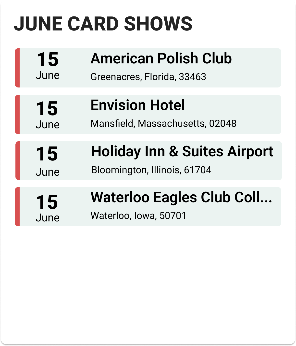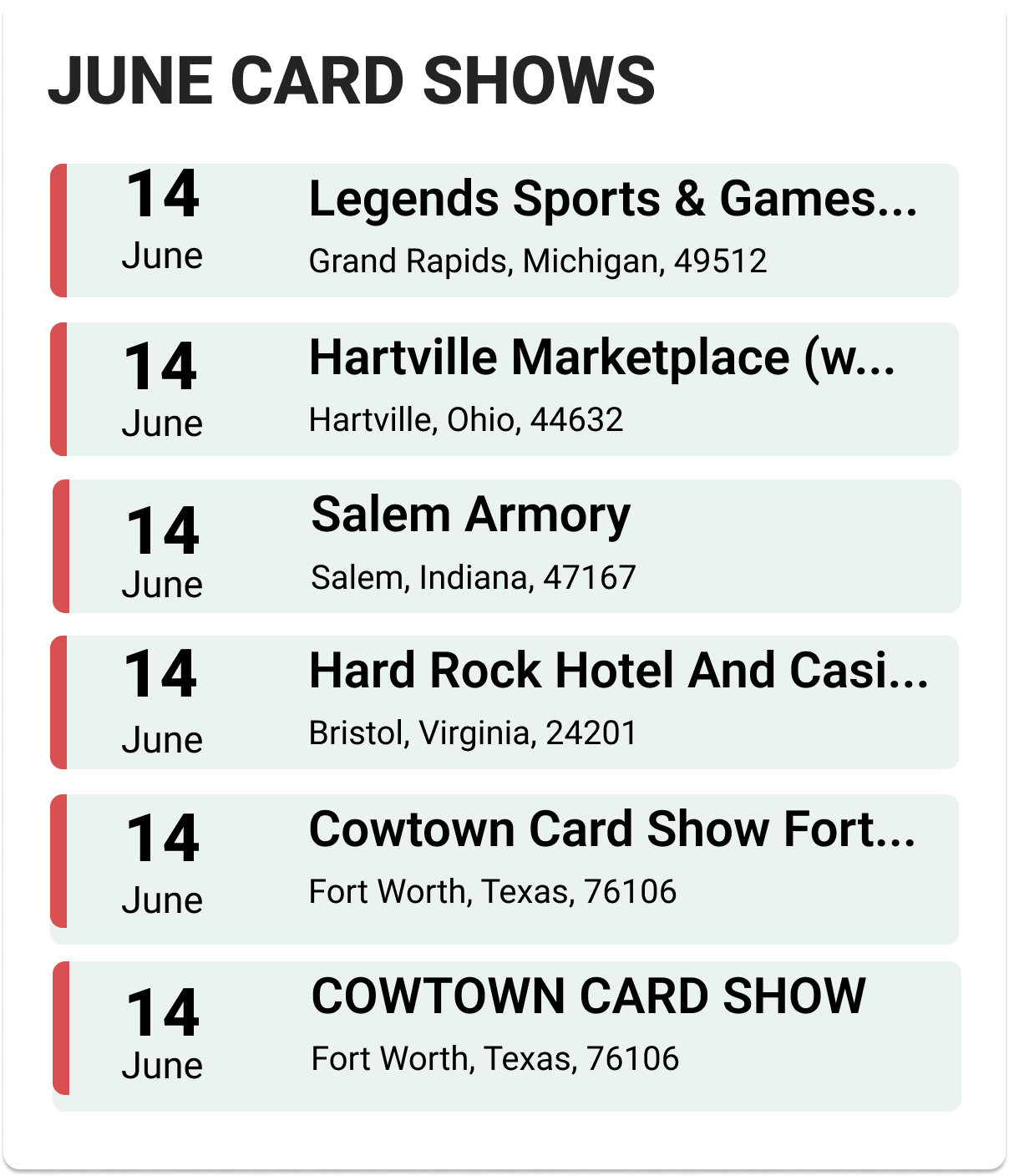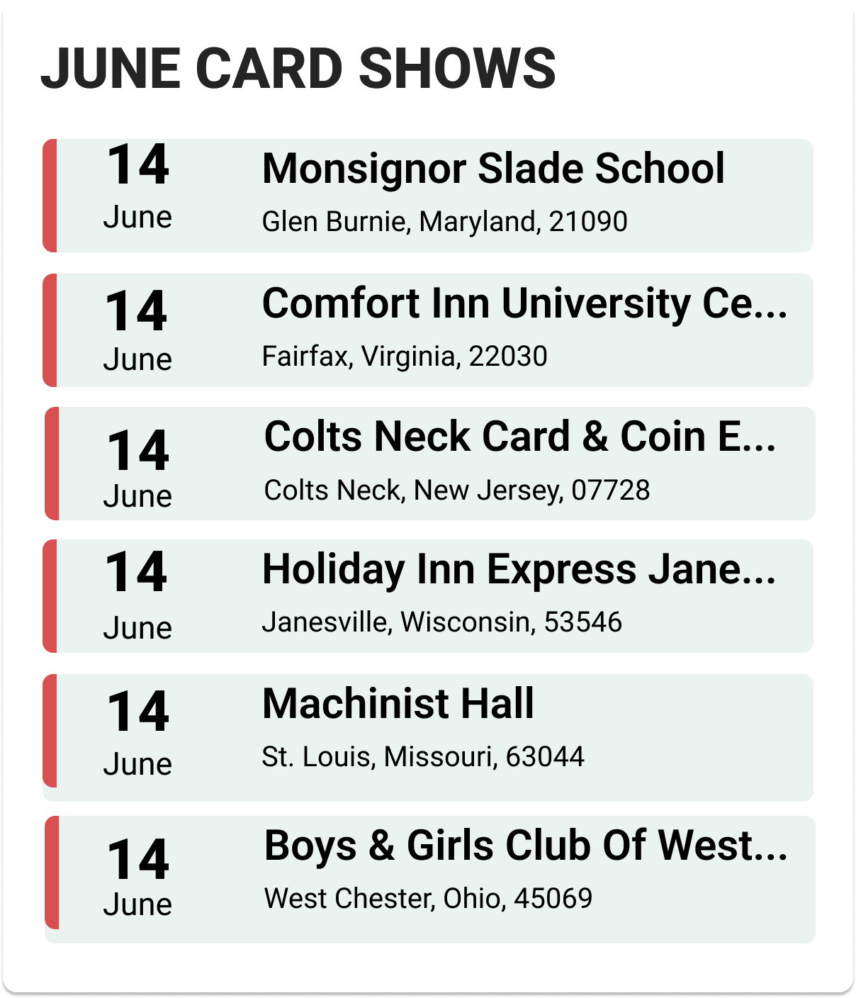 Upcoming Card Shows: Second Week June 2025: