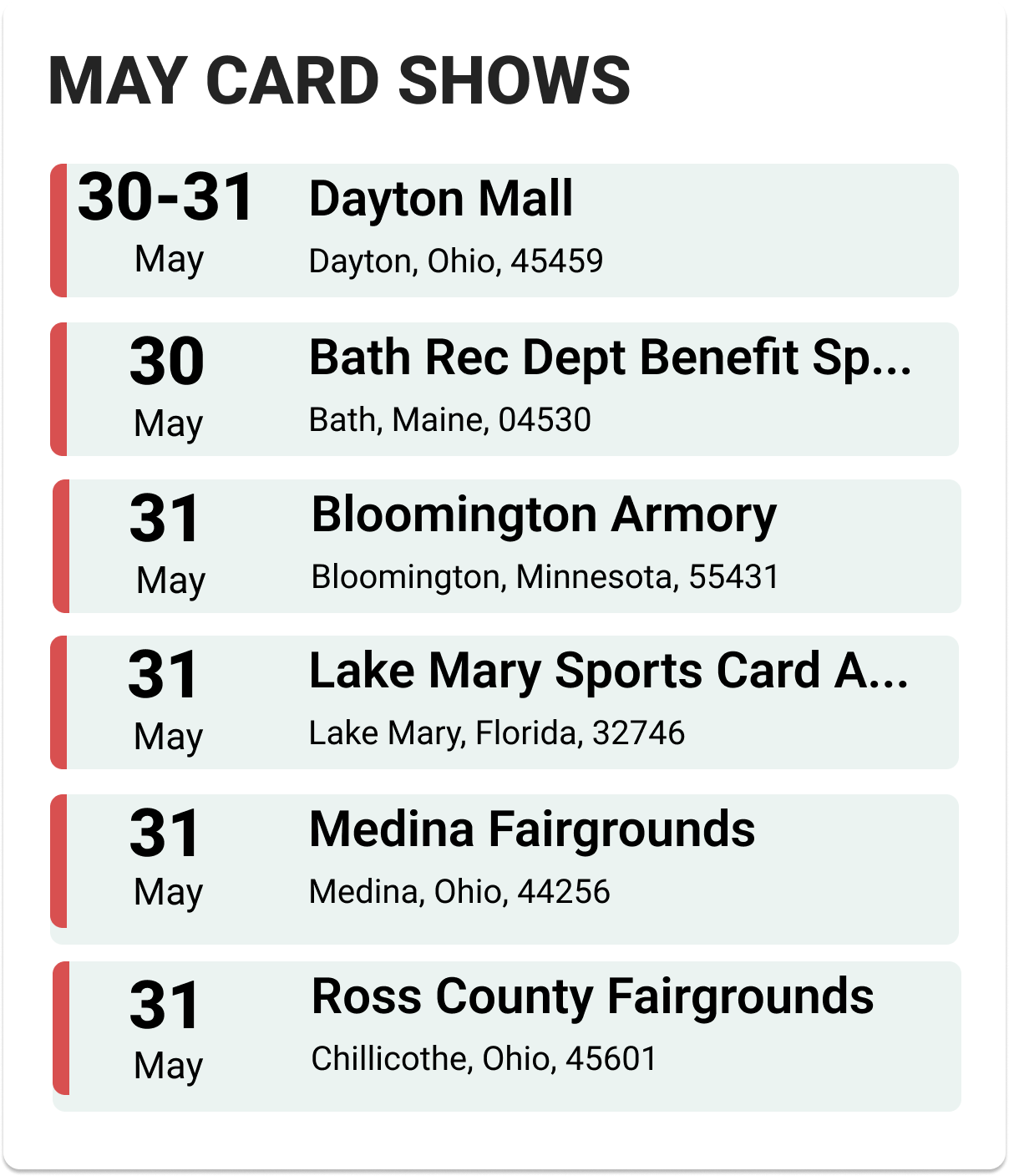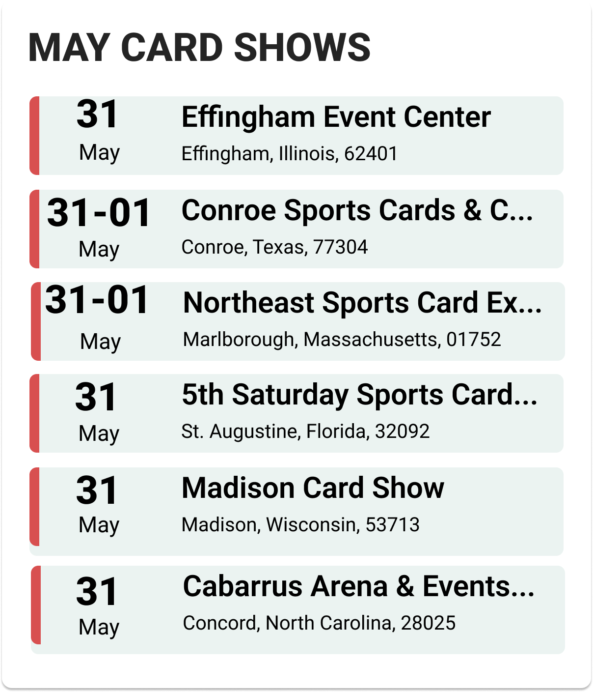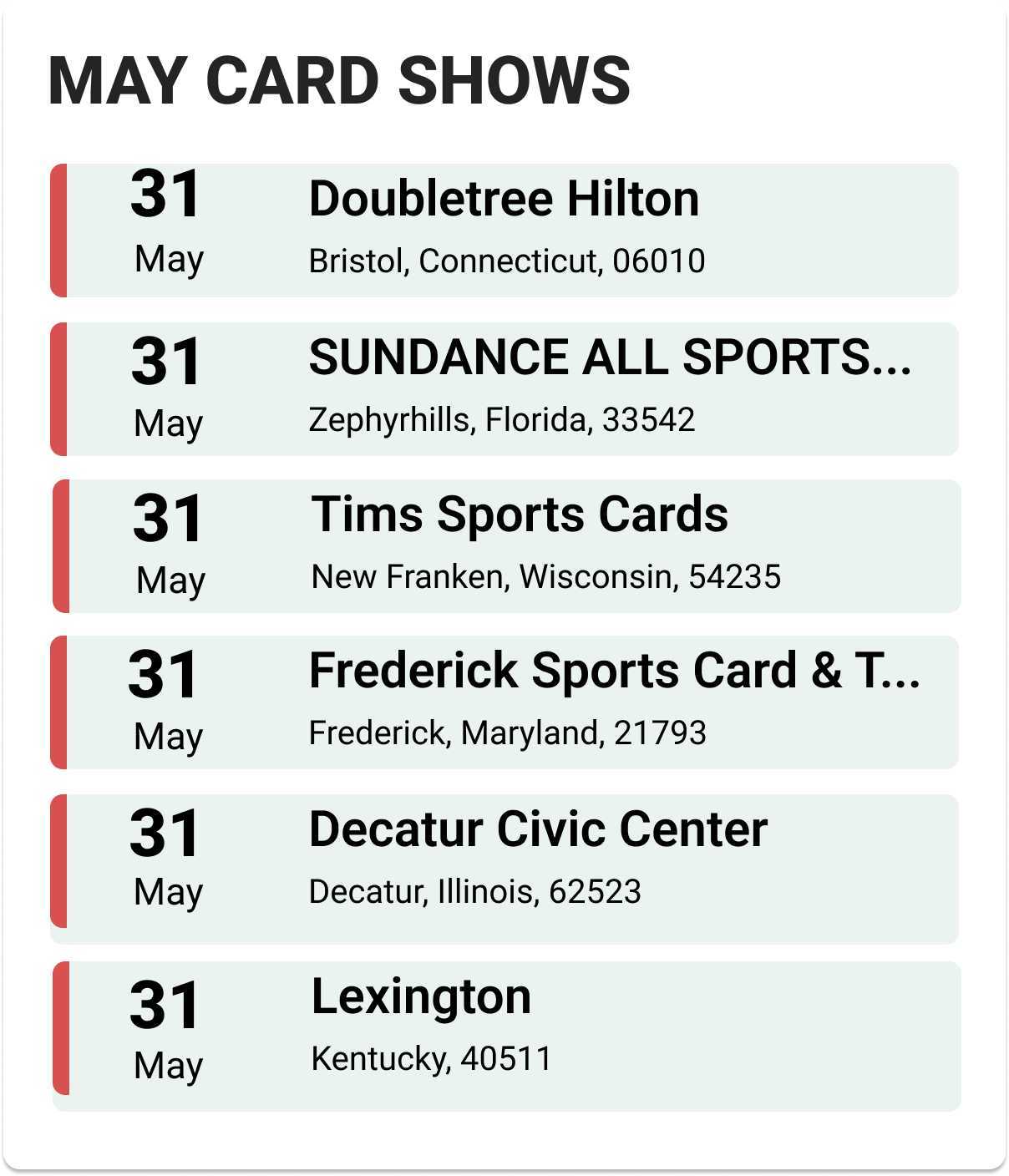 Upcoming Card Shows: Last Week May 2025: