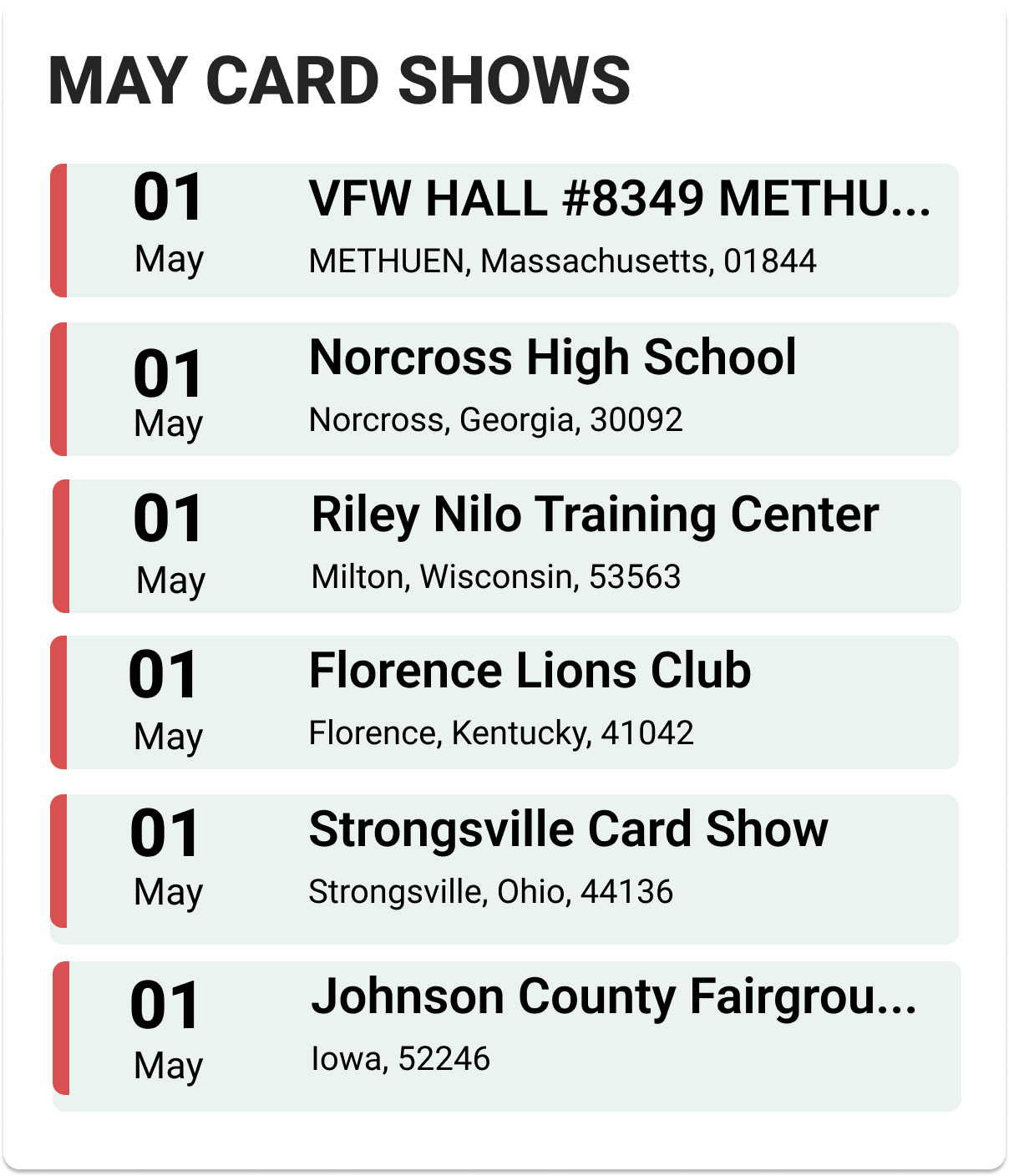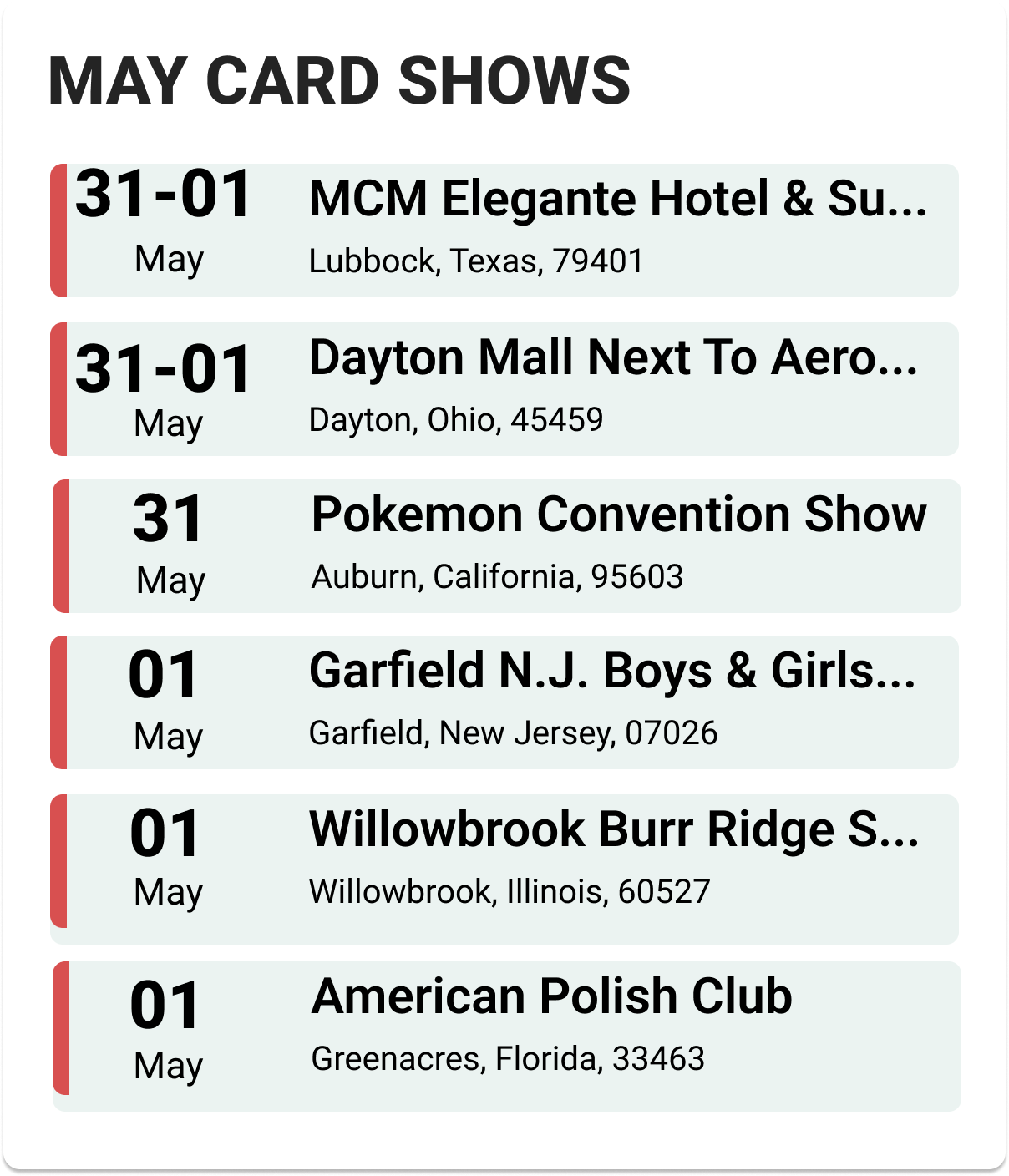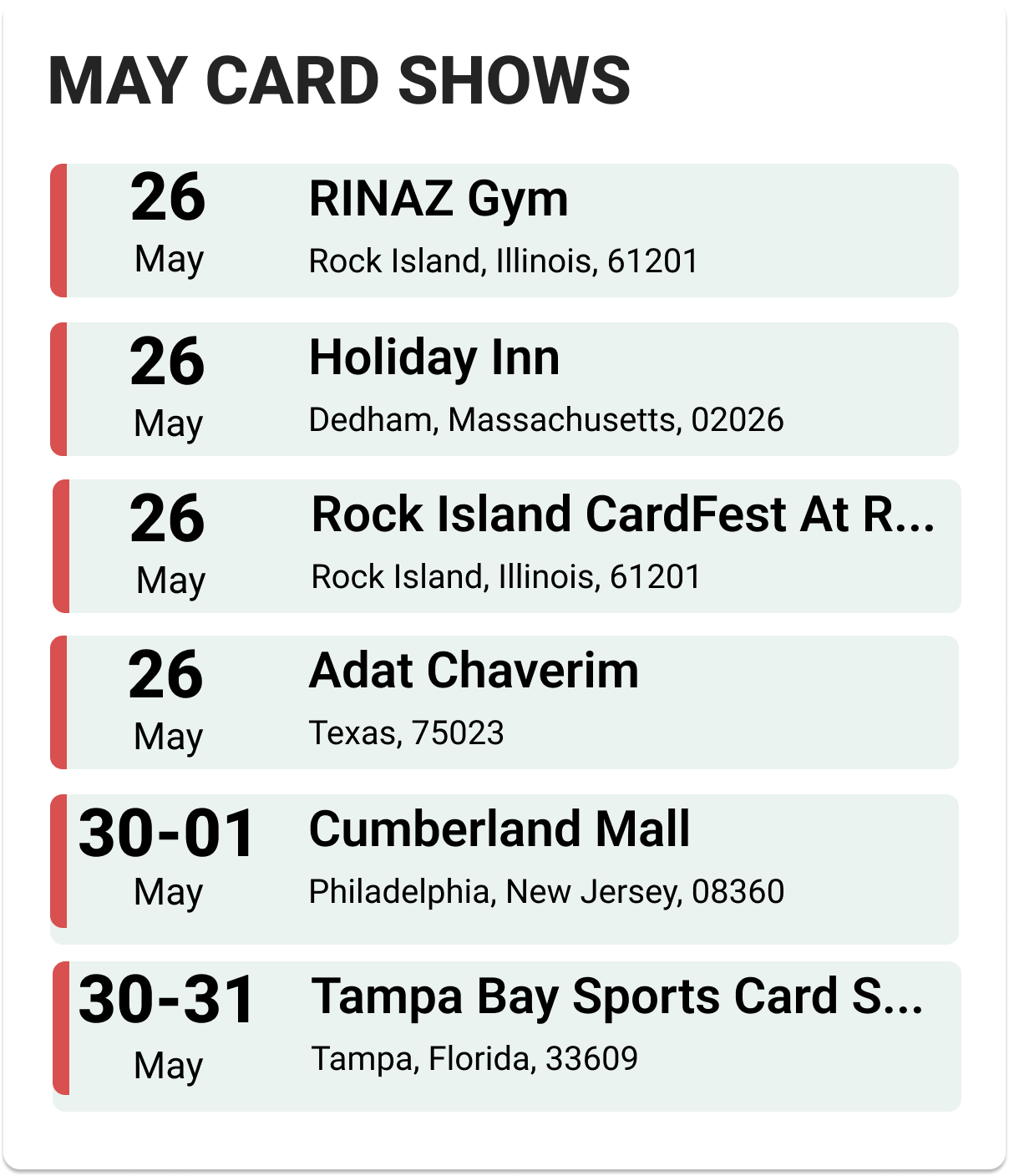 Upcoming Card Shows: Last Week May 2025: