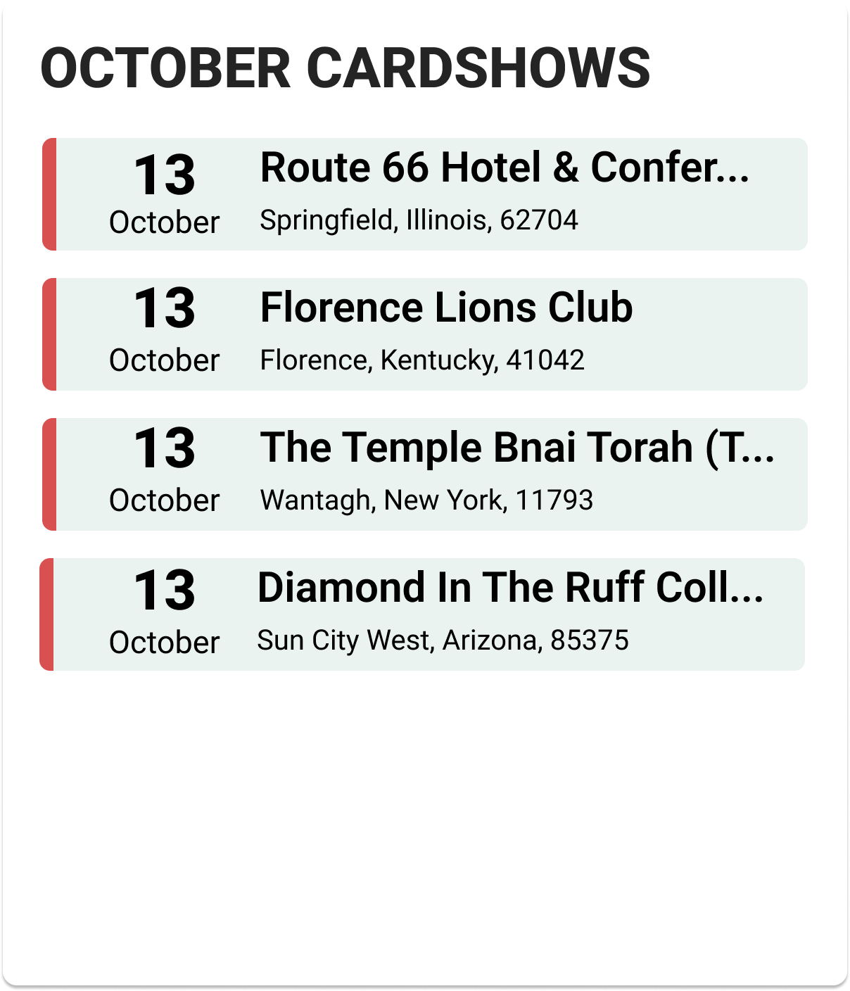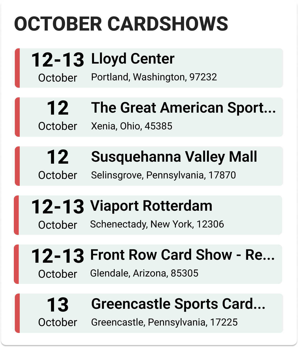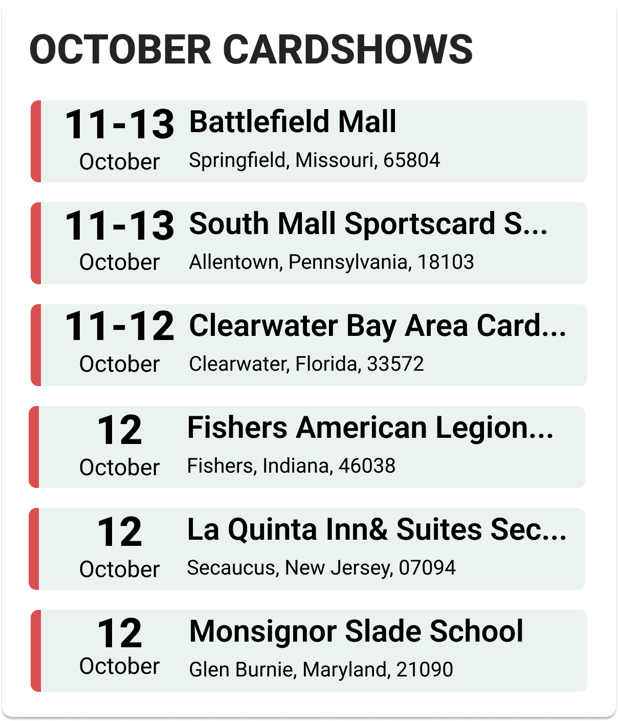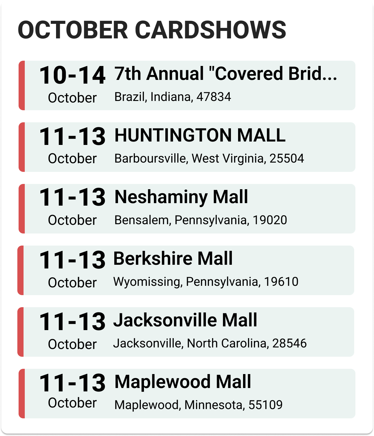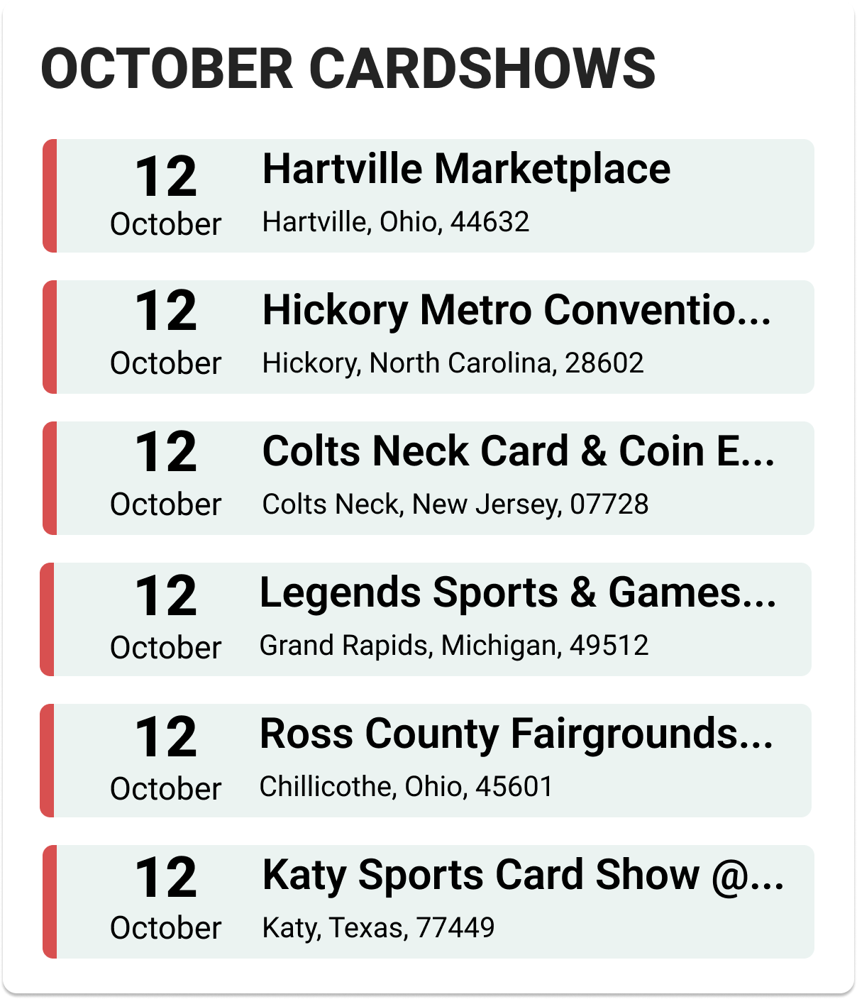 Details: A local card show featuring vendors offering a variety of sports cards and collectibles. This event is perfect for Ohio collectors looking for rare finds.